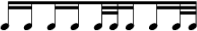 Weiterhin kann mit beatExceptions eine Abbildung von "Dauer zu Zeitpunktliste" angegeben werden, die für alle Gruppen, welche genau diese Dauer als kürzeste enthalten, angeben, an welcher taktrelativen Position diese Gruppe zu enden hat. Damit kann das in [gieseking] durch dynamische Regeln angestrebte Ergebnis auf tabellarischem Wege erreicht werden. So kann z.B. festgesetzt werden, dass "Nur-Achtel" in Vierergruppen verbalkt werden, Sechzehntelgruppen aber in kleineren. Folgendes Beispiel ist artifiziell, als es letztere in beiden Takthälften unterschiedlich behandelt: